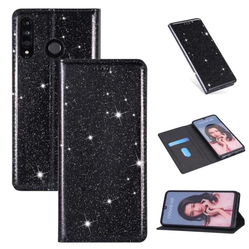 Για Huawei P30 Lite Ultrathin Glitter μαγνητική οριζόντια Flip δερμάτινη θήκη με θήκη & υποδοχές καρτών (μαύρο)