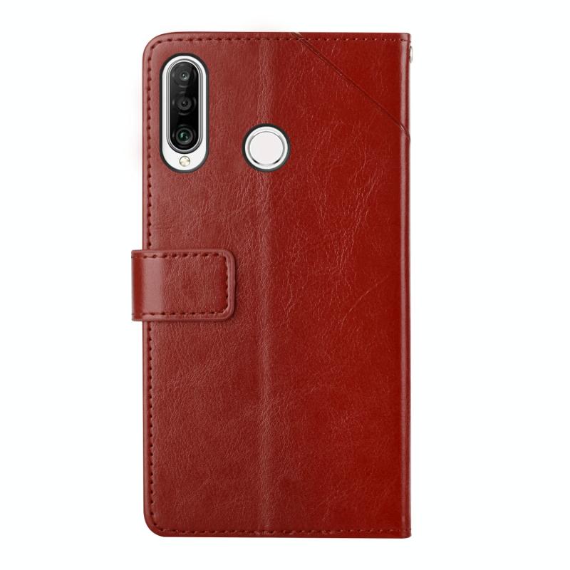 Θήκη τηλεφώνου Huawei P30 Lite Y, δερμάτινη, οριζόντια, με ράψιμο, με βάση στήριξης, θήκες για κάρτες, πορτοφόλι & κορνίζα φωτογραφίας (Χρυσό ροζ)