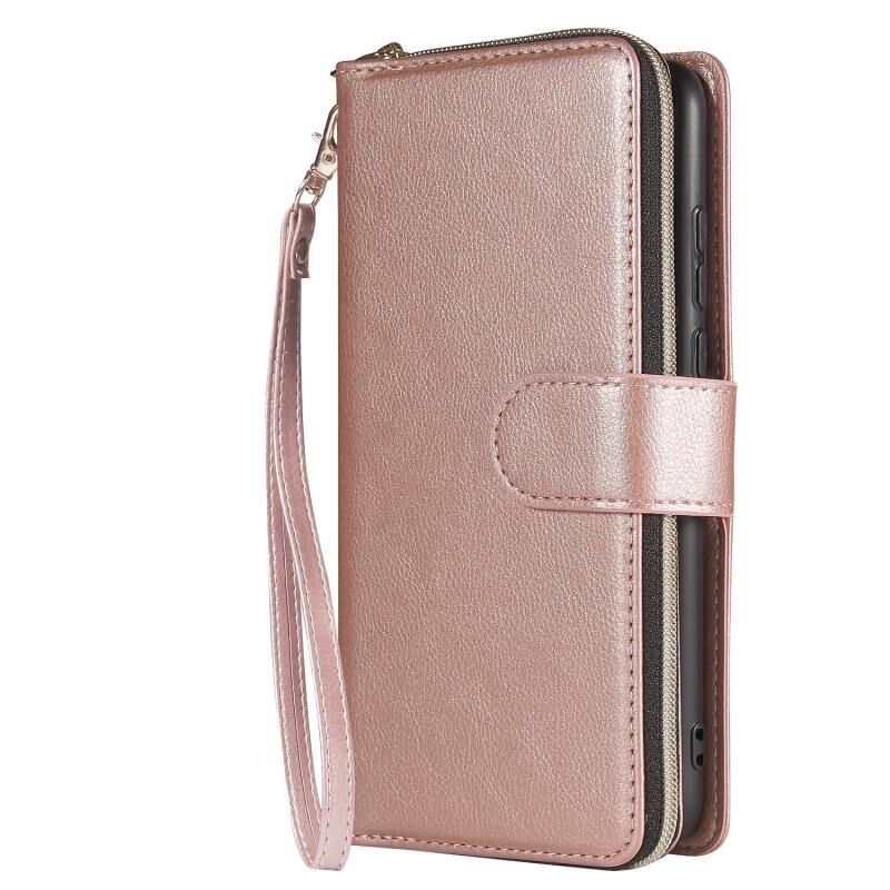 Για Huawei P30 Lite φερμουάρ τσάντα πορτοφόλι οριζόντια Flip PU δέρμα υπόθεση με κάτοχο & 9 υποδοχές για κάρτες & πορτοφόλι & κορδόνι & κορνίζα & πλαίσιο φωτογραφιών (Rose Gold)