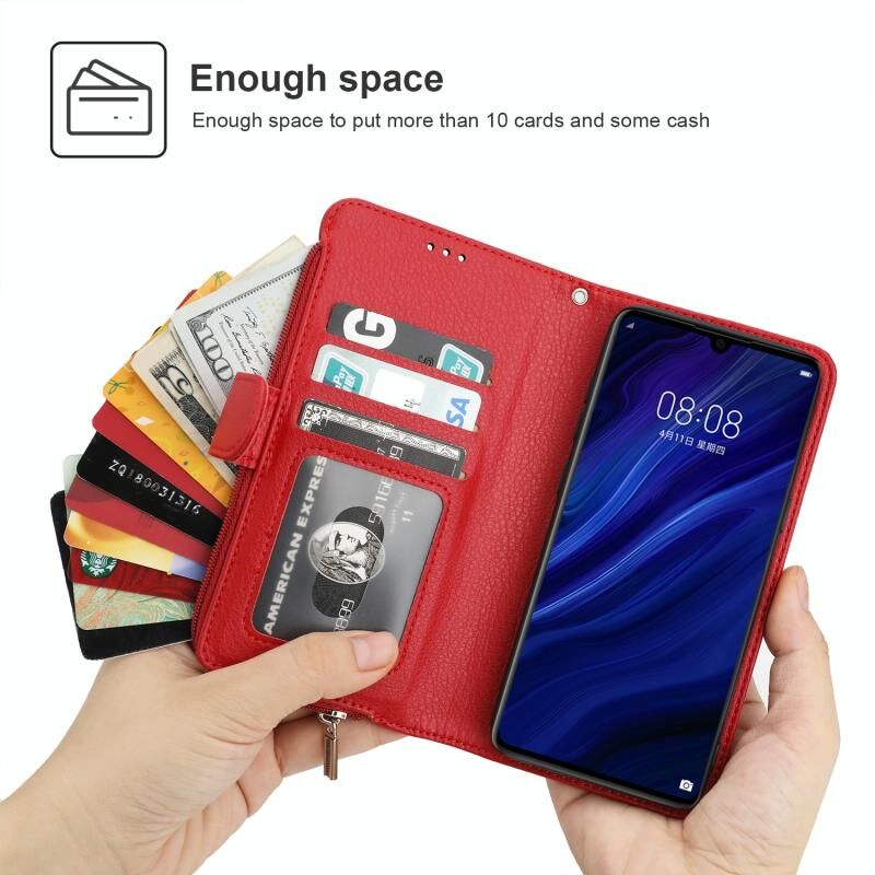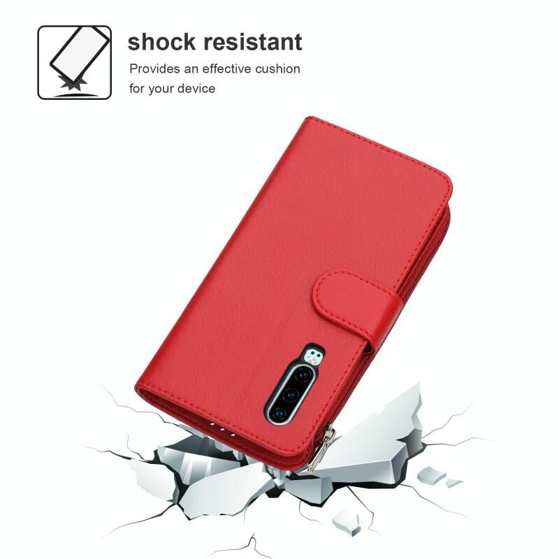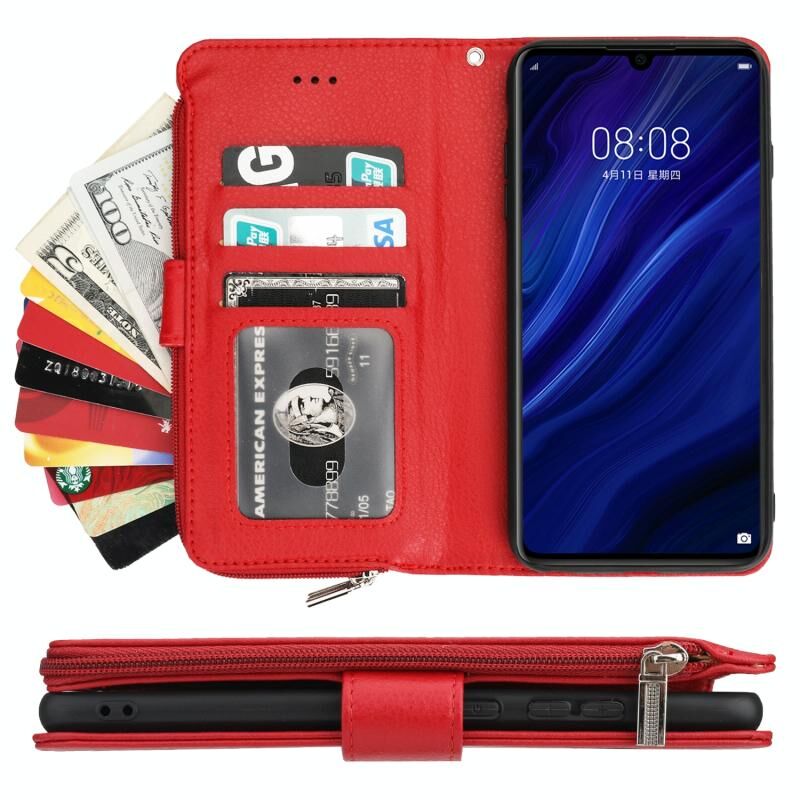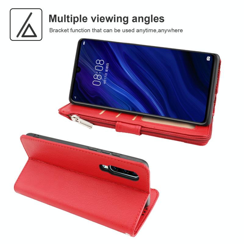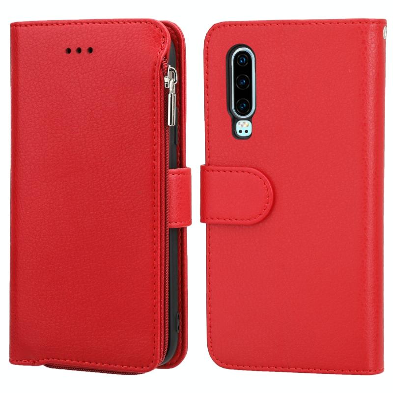 For Huawei P30 Microfiber Zipper Horizontal Flip Leather Case(Red)
