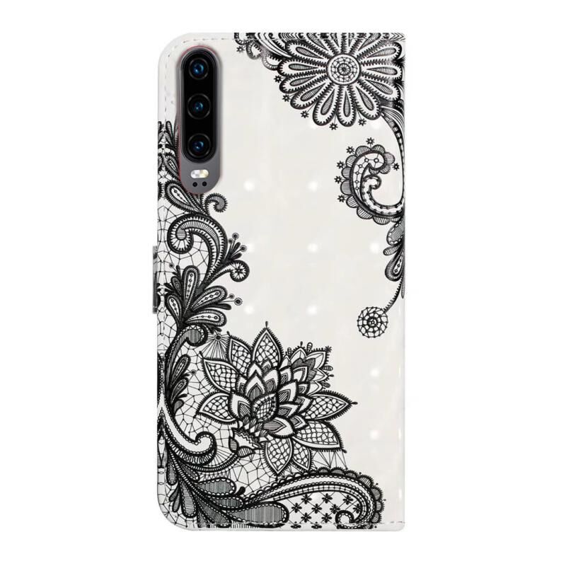 Θήκη τηλεφώνου Huawei P30 με ανάγλυφο σχέδιο λαδιού και δέρμα (Δαντέλα Λουλούδι)