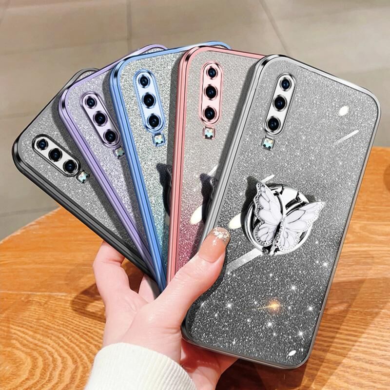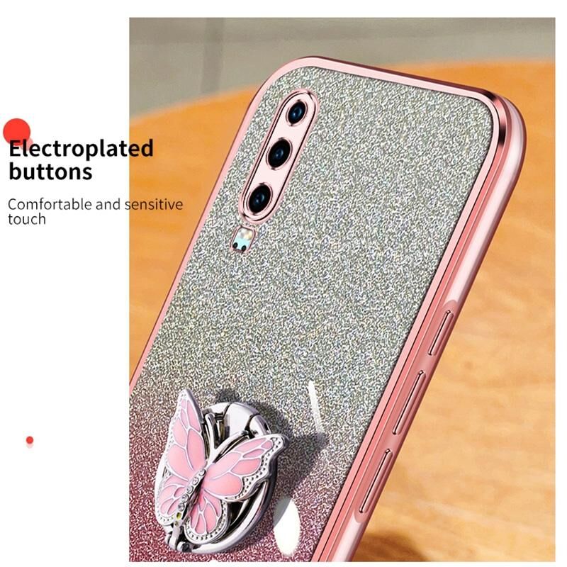 Θήκη κινητού τηλεφώνου Huawei P30 με επιμετάλλωση, διαβαθμισμένη λάμψη, σχέδιο πεταλούδας, από TPU (Ροζ)