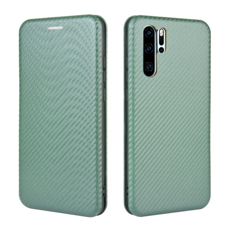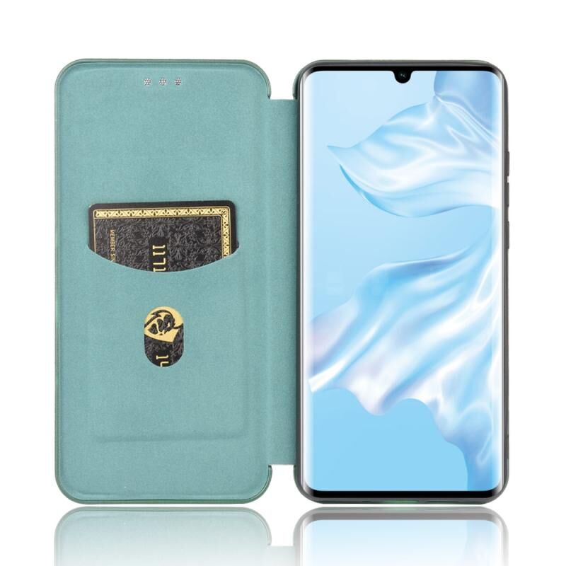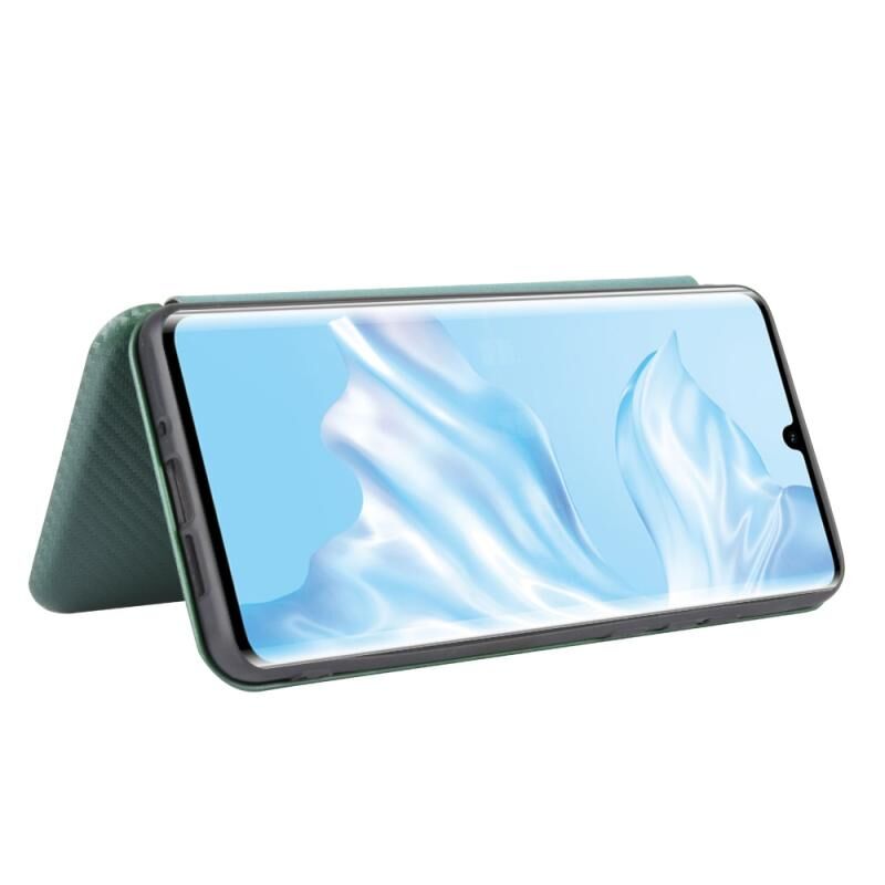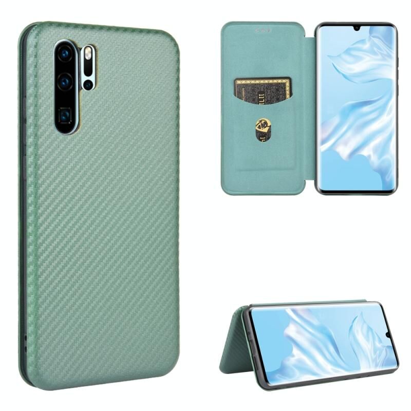 Για Huawei P30 Pro Carbon Fiber Texture Οριζόντια Flip TPU + PC + PU δέρμα υπόθεση με υποδοχή κάρτας (πράσινο)