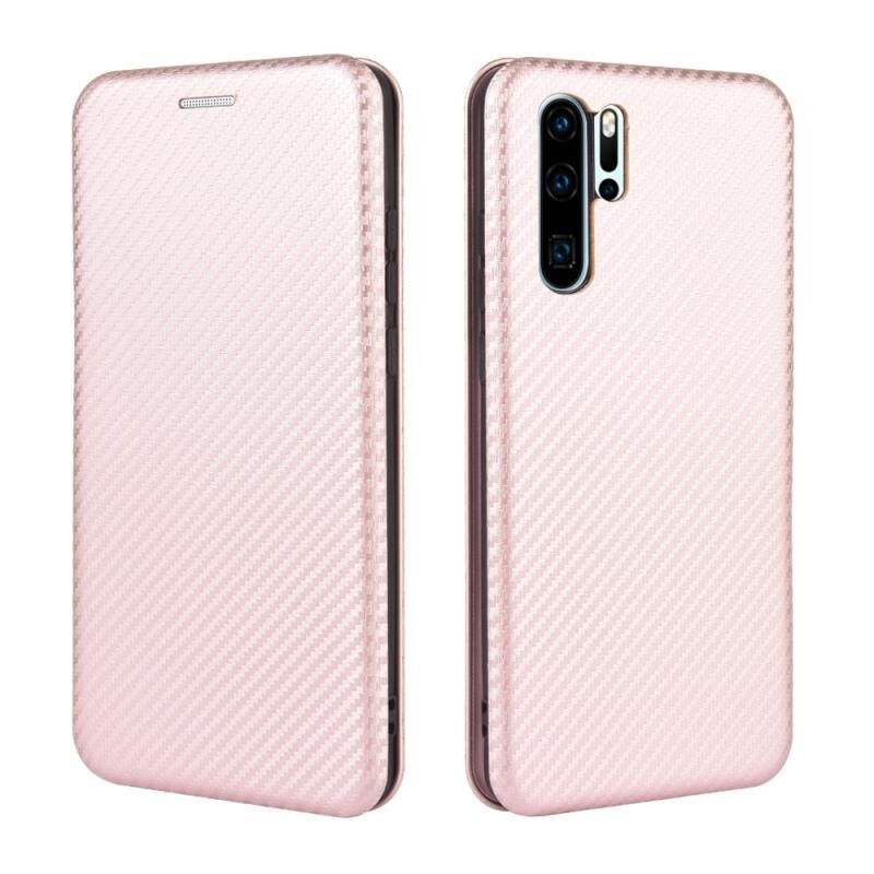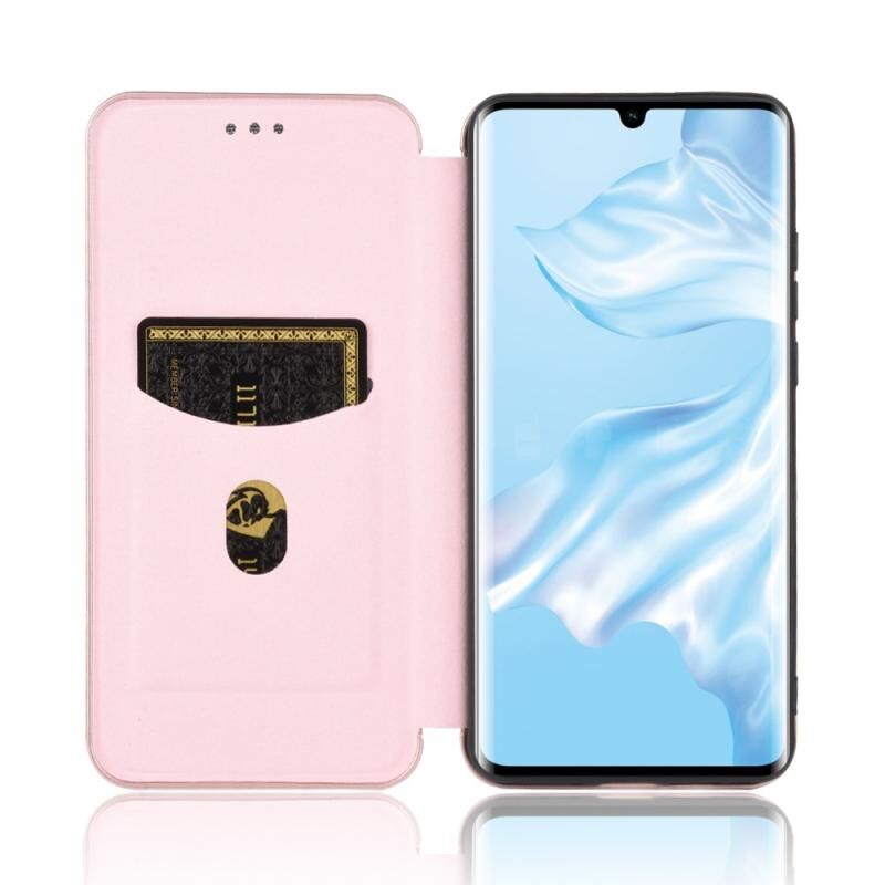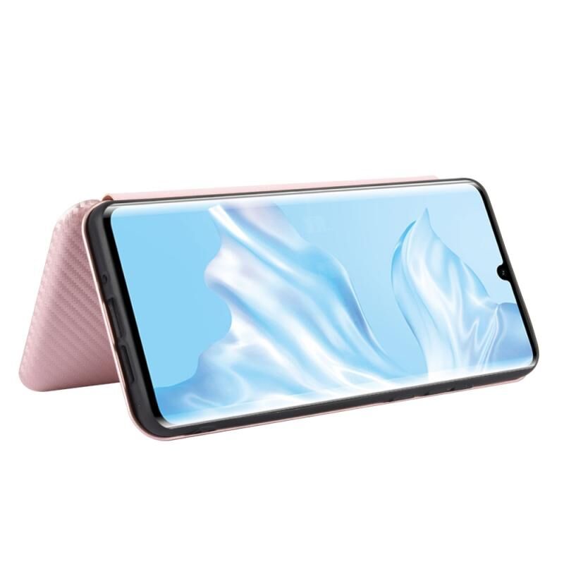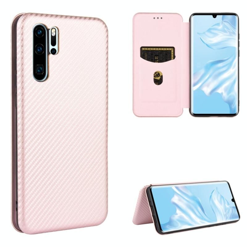Για Huawei P30 Pro Carbon Fiber Texture Οριζόντια Flip TPU + PC + PU δέρμα υπόθεση με υποδοχή κάρτας (ροζ)