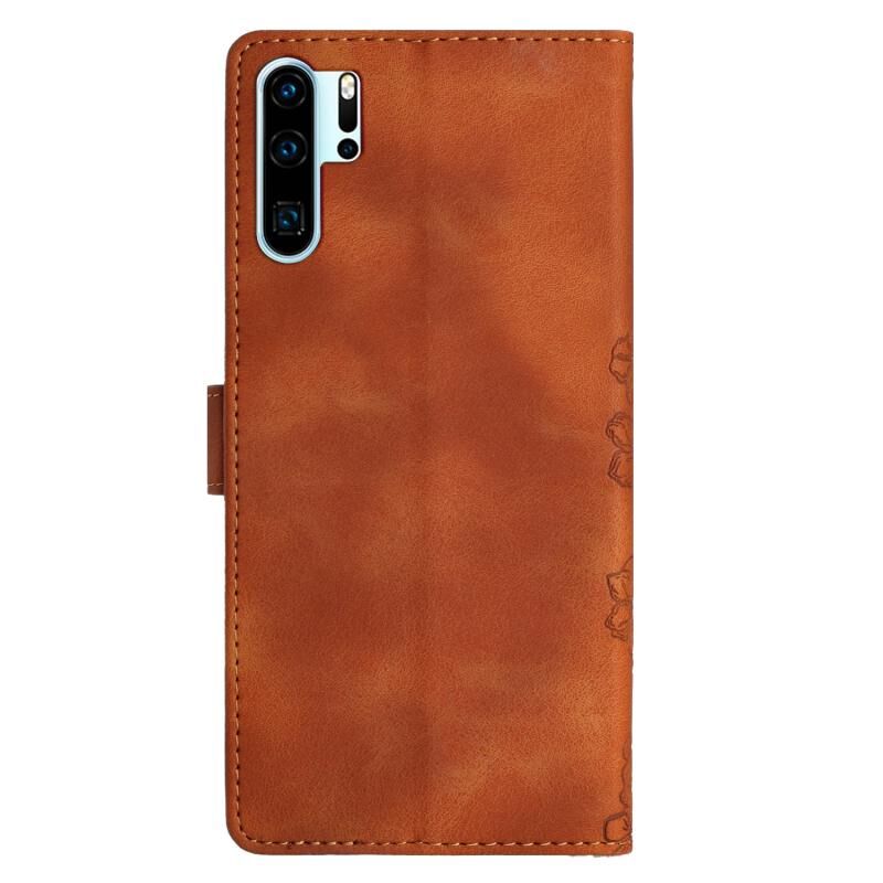 Θήκη τηλεφώνου Huawei P30 Pro με ανάγλυφο PU υφή Cherry Blossom Butterfly (Καφέ)