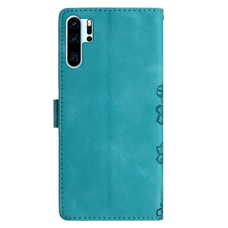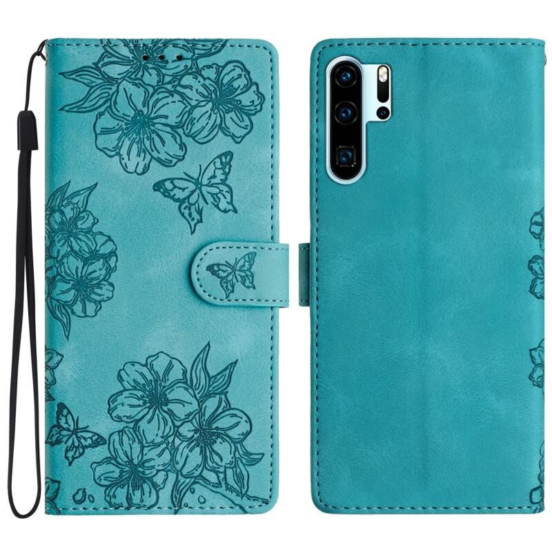 Θήκη τηλεφώνου Huawei P30 Pro με ανάγλυφο PU υφή Cherry Blossom Butterfly (πράσινο)