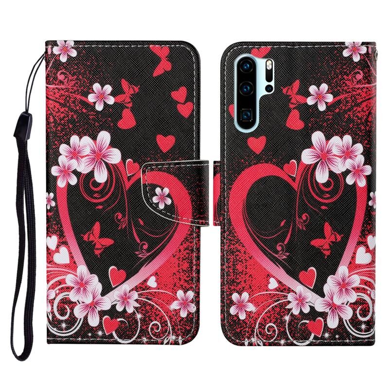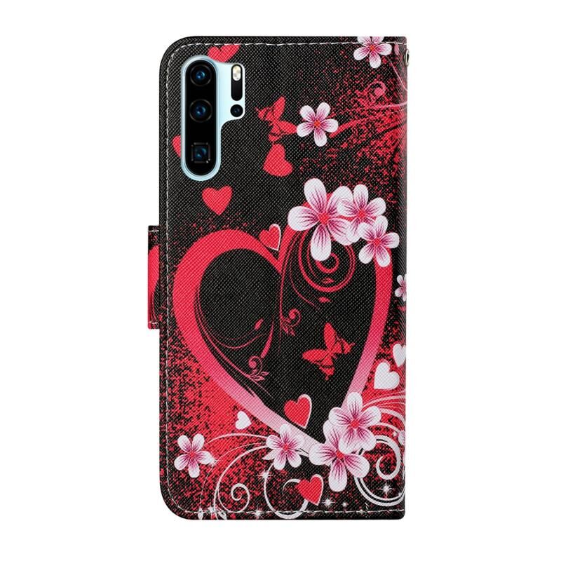 Θήκη δέρματος οριζόντιας αναδίπλωσης με σχέδιο πολύχρωμης ζωγραφικής για Huawei P30 Pro με βάση στήριξης & υποδοχές καρτών & πορτοφόλι & κορδόνι (Μαύρος Πλανήτης)