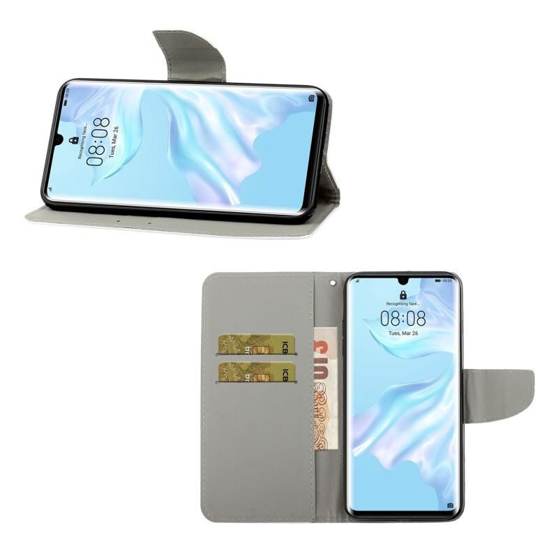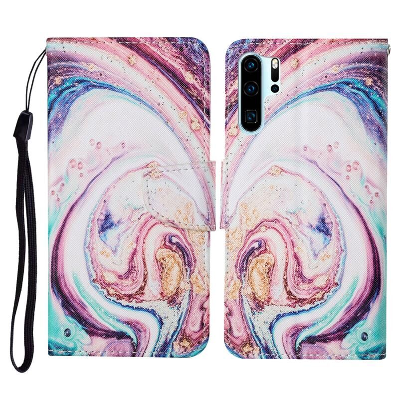 Θήκη δέρματος οριζόντιας αναδίπλωσης με σχέδιο πολύχρωμης ζωγραφικής για Huawei P30 Pro με βάση στήριξης & υποδοχές καρτών & πορτοφόλι & κορδόνι (Μαρμάρινο Στροβιλισμός)