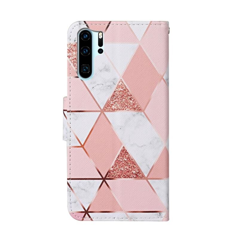 Θήκη δέρματος οριζόντιας αναδίπλωσης με σχέδιο έγχρωμης ζωγραφικής για Huawei P30 Pro με βάση στήριξης & υποδοχές καρτών & πορτοφόλι (Μάρμαρο)