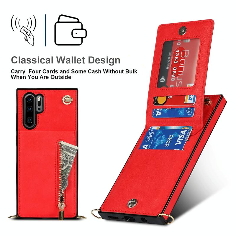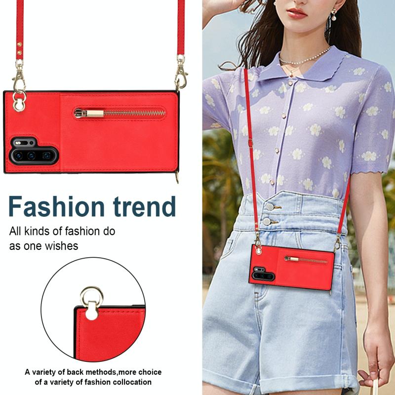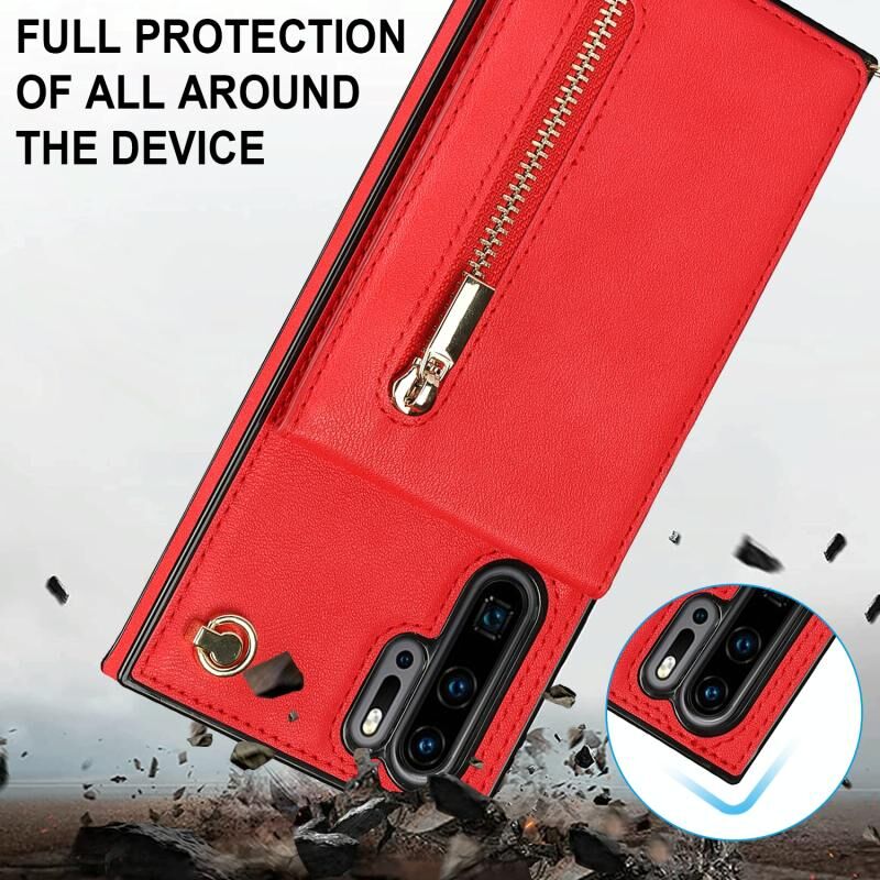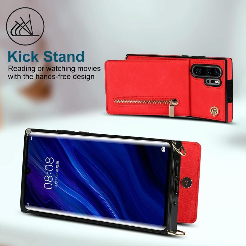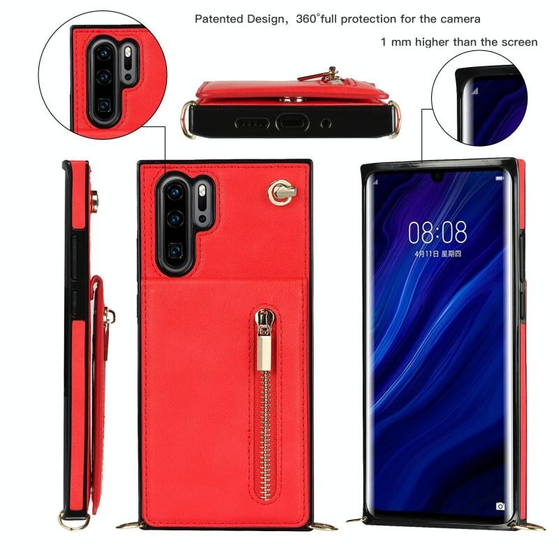 Θήκη για Huawei P30 Pro, διαγώνια, με φερμουάρ, τετράγωνη, από TPU+PU με βάση στήριξης, θήκες για κάρτες, πορτοφόλι και λουρί (Μωβ)