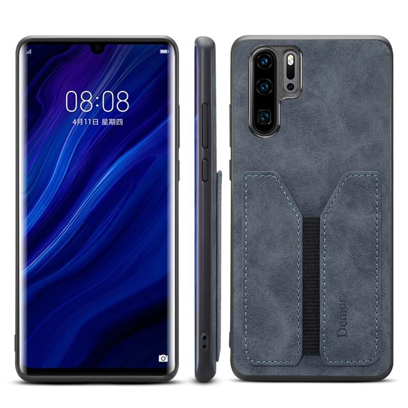 Για Huawei P30 Pro Denior DV ελαστική κάρτα PU πίσω κάλυμμα τηλέφωνο υπόθεση (γκρι) (Denior)