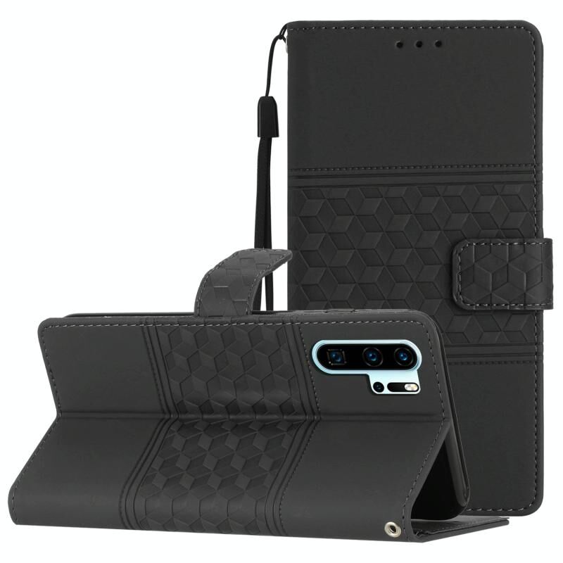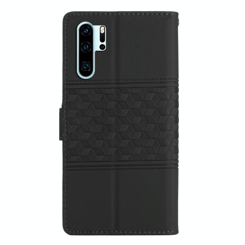 Θήκη τηλεφώνου Huawei P30 Pro με δερμάτινη υφή διαμαντένιας ανάγλυφης επεξεργασίας με κορδόνι (Μαύρο)