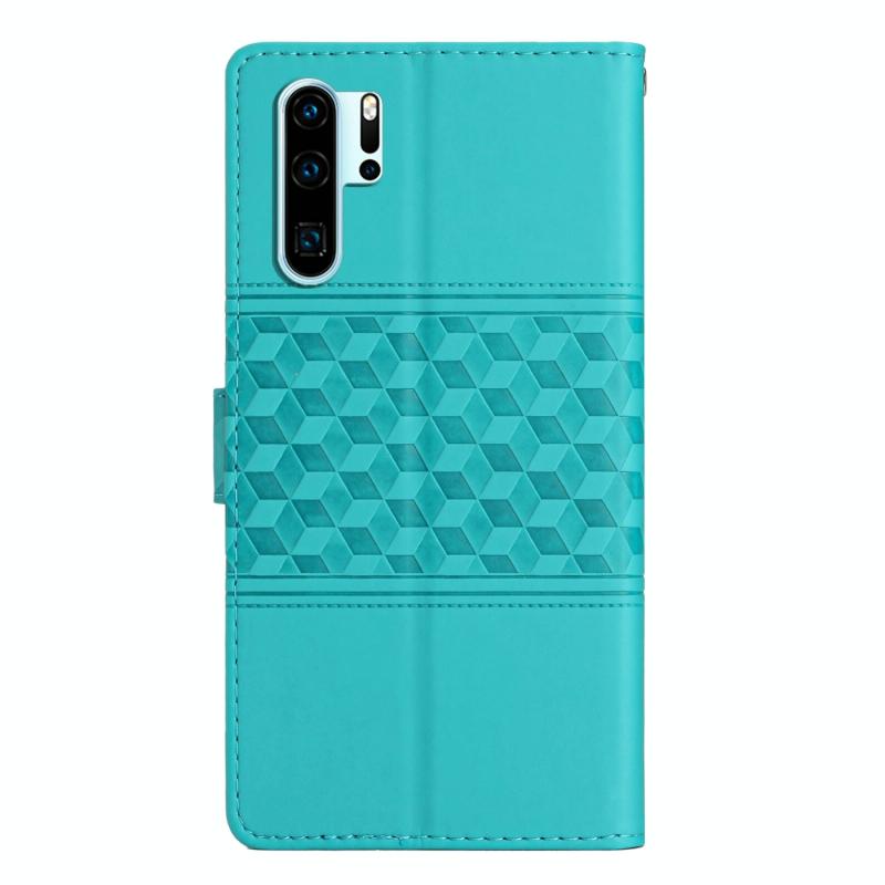 Θήκη τηλεφώνου Huawei P30 Pro με δερμάτινη υφή διαμαντένιας ανάγλυφης επεξεργασίας με κορδόνι (Μπλε)