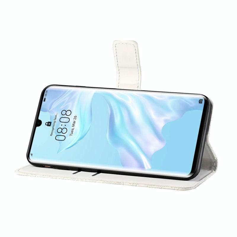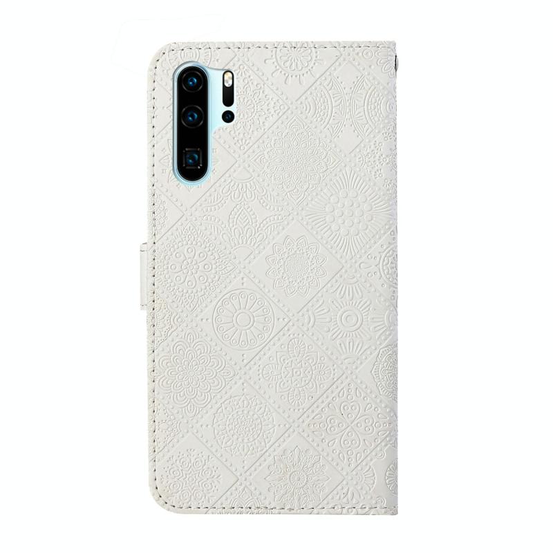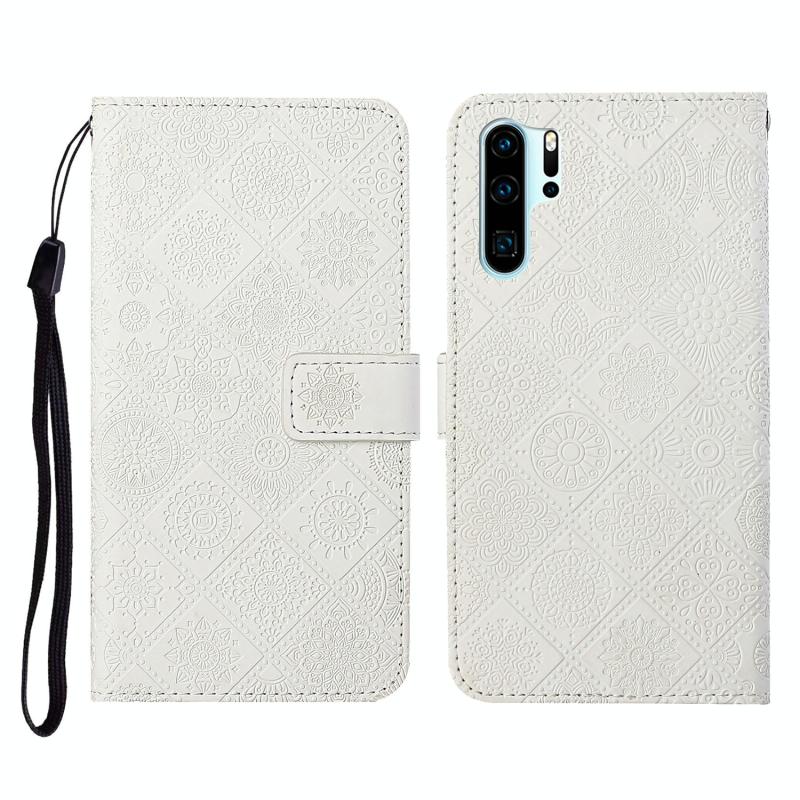 For Huawei P30 Pro Ethnic Style Embossed Pattern Horizontal Flip Leather Case with Holder & Card Slots & Wallet & Lanyard(White)