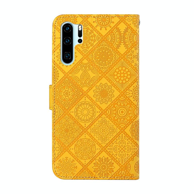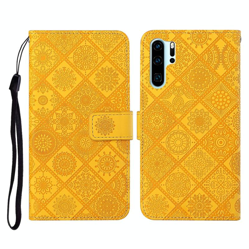 For Huawei P30 Pro Ethnic Style Embossed Pattern Horizontal Flip Leather Case with Holder & Card Slots & Wallet & Lanyard(Yellow)