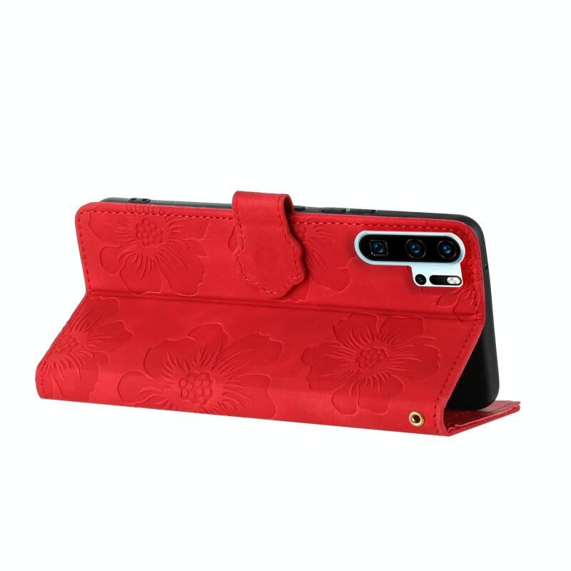 Για Huawei P30 Pro λουλούδι ανάγλυφο μοτίβο δερμάτινη θήκη τηλεφώνου (κόκκινο)