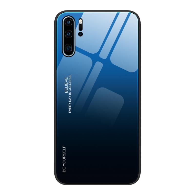 Για το Huawei P30 Pro Κλιμακωτή γυάλινη θήκη χρώματος (μπλε μαύρο)
