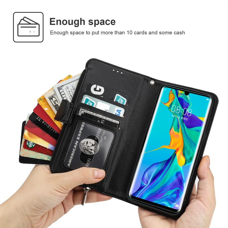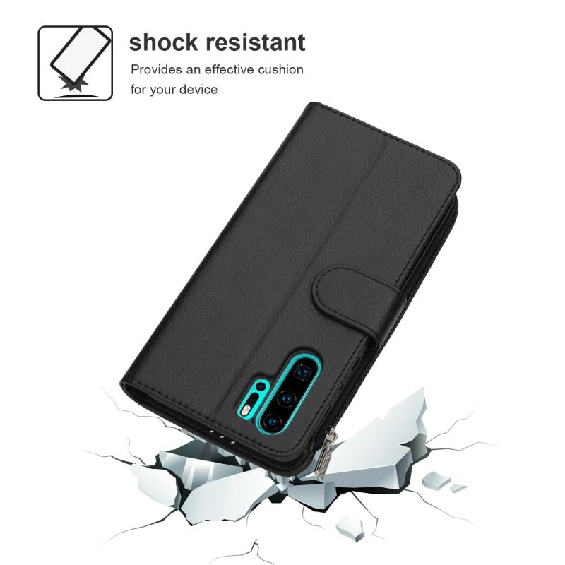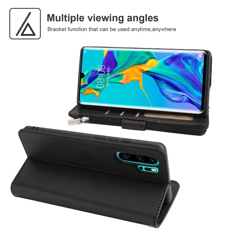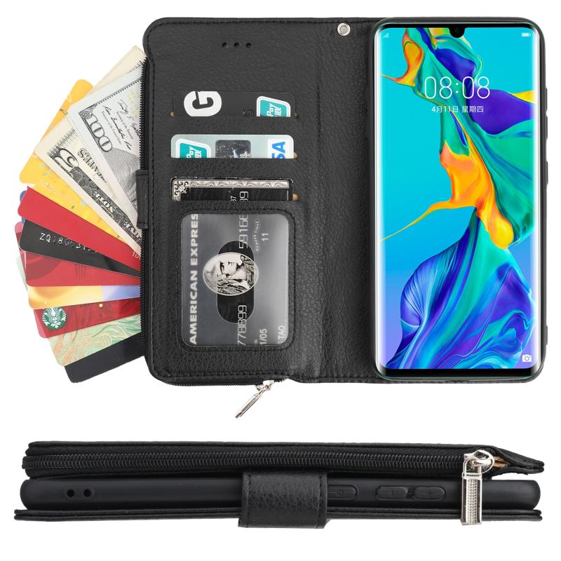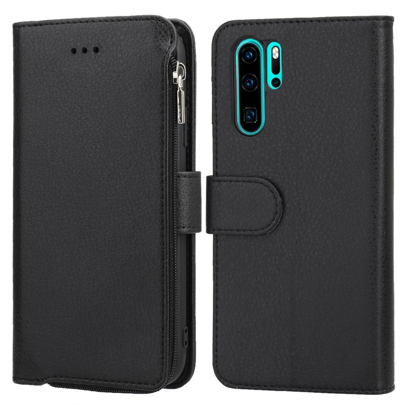 For Huawei P30 Pro Microfiber Zipper Horizontal Flip Leather Case(Black)