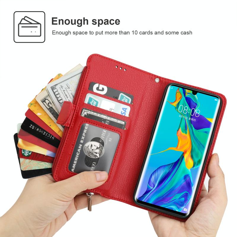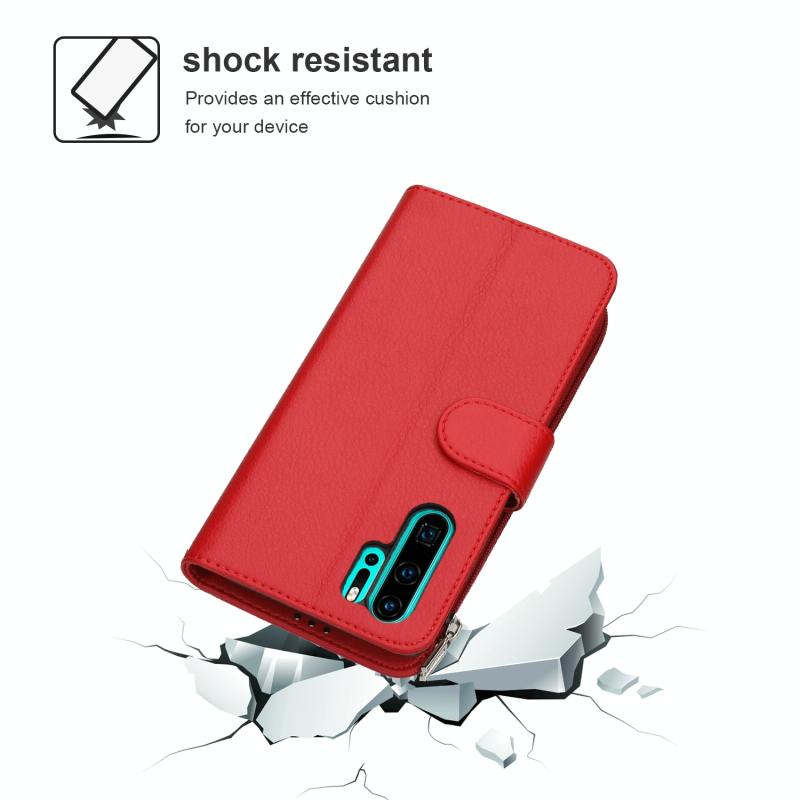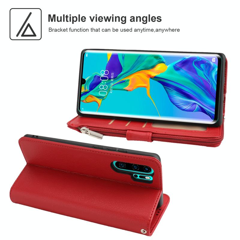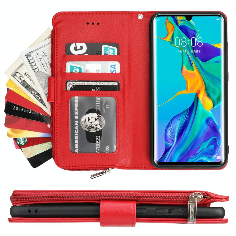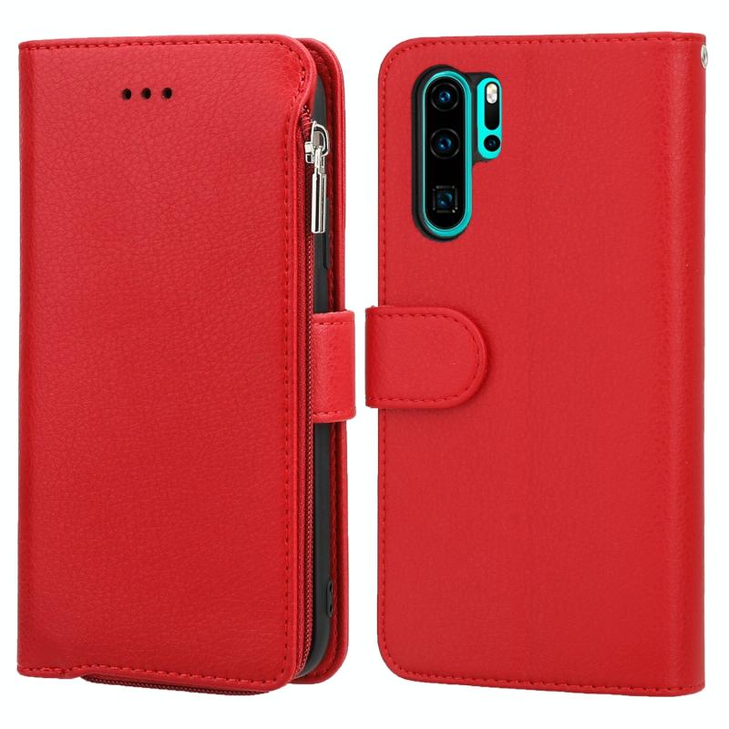 Θήκη δέρματος οριζόντιας αναδίπλωσης με φερμουάρ και μικροΐνες για Huawei P30 Pro (Πράσινη)