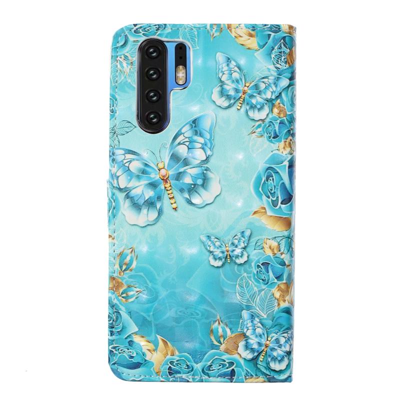For Huawei P30 Pro Oil Embossed 3D Drawing Leather Phone Case(Blue Butterflies)