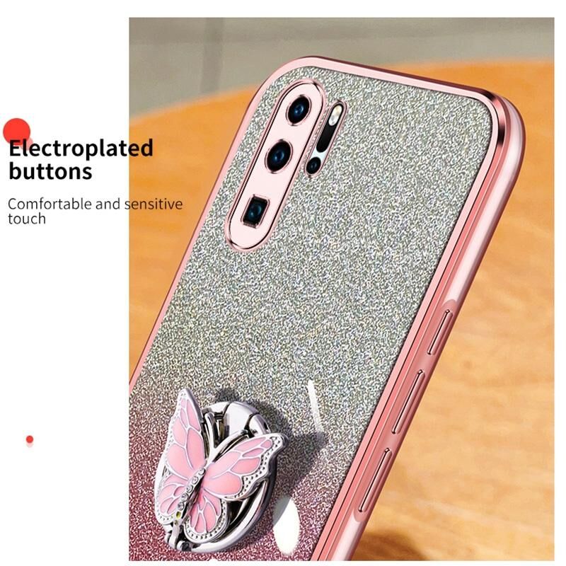 Θήκη κινητού τηλεφώνου Huawei P30 Pro με επιμετάλλωση, διαβαθμισμένη λάμψη, σχέδιο πεταλούδας, από TPU (Μωβ)