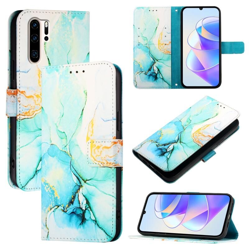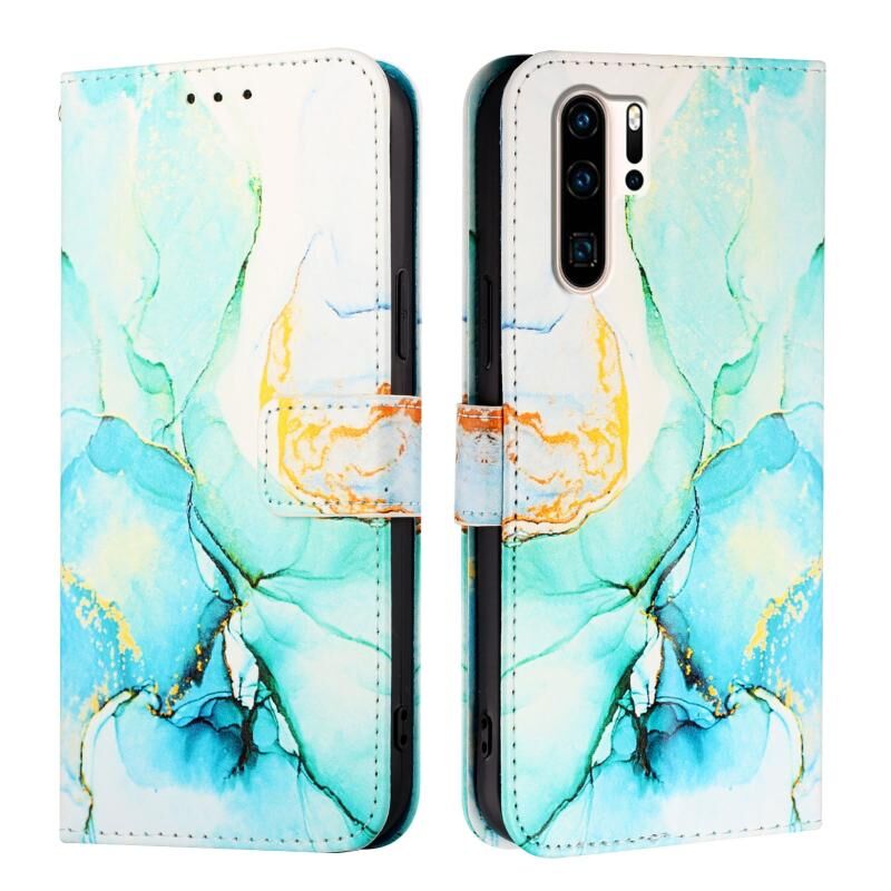 Θήκη τηλεφώνου Huawei P30 Pro PT003 από δέρμα με σχέδιο μάρμαρου και πτυσσόμενο μηχανισμό (Λευκό-Μωβ)