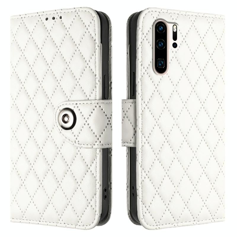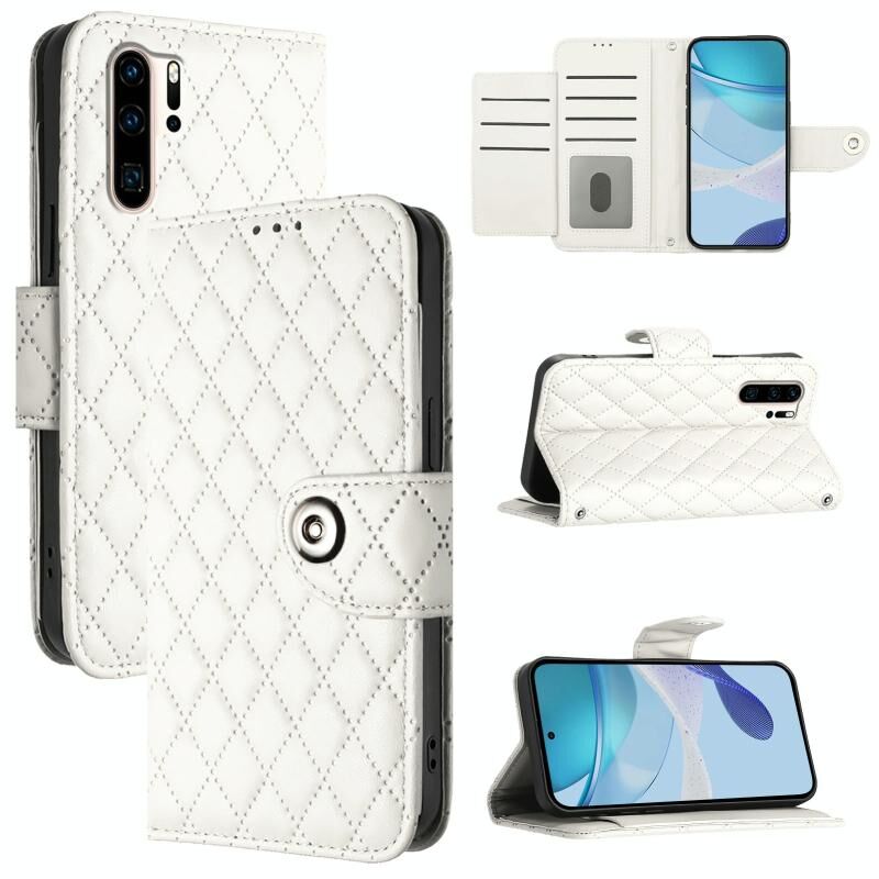 Για το Huawei P30 Pro Rhombic Texture Flip δερμάτινη θήκη τηλεφώνου με κορδόνι (λευκό)