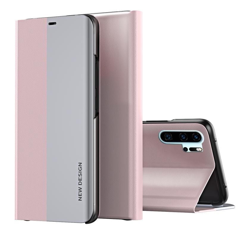 Θήκη δέρματος οριζόντιας αναδίπλωσης με λεπτό σχεδιασμό και ηλεκτρολυτική επένδυση για Huawei P30 Pro, με βάση στήριξης (Μαύρο)