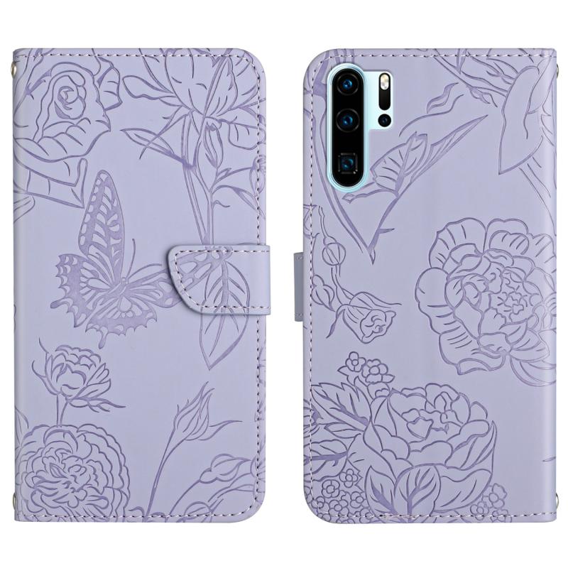 For Huawei P30 Pro Skin Feel Butterfly Peony Embossed Leather Phone Case(Purple)