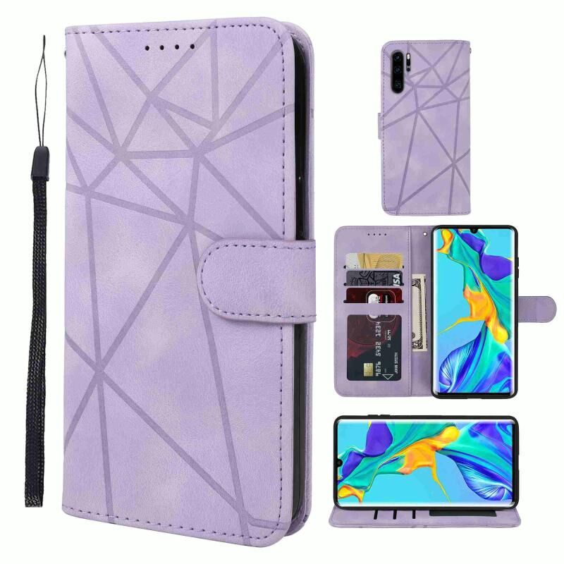 Για το Huawei P30 Pro Skin Feel Γεωμετρικές γραμμές δερμάτινη θήκη τηλεφώνου (μωβ)
