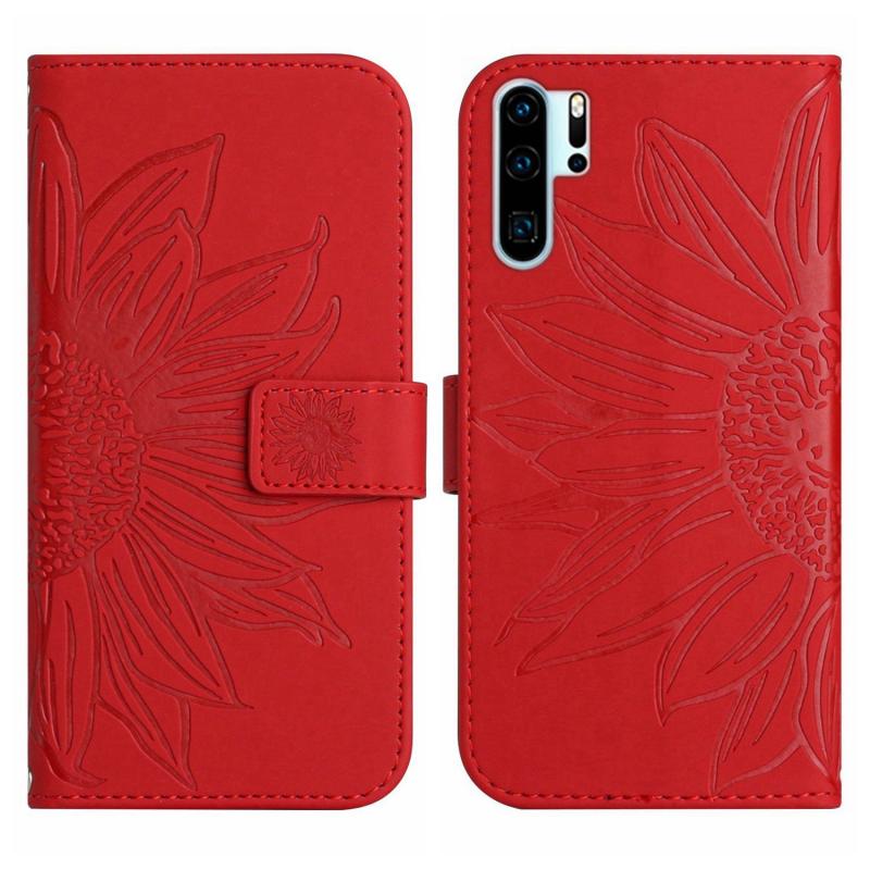 Θήκη τηλεφώνου Huawei P30 Pro από δέρμα με σχέδιο ηλιοτρόπιου και αίσθηση δέρματος, με λουρί (Κόκκινο)