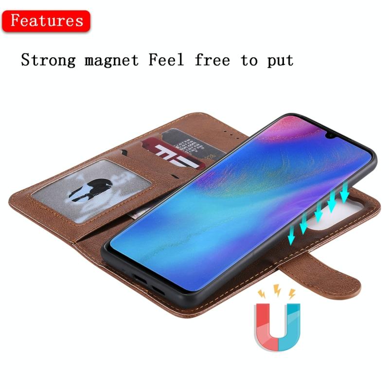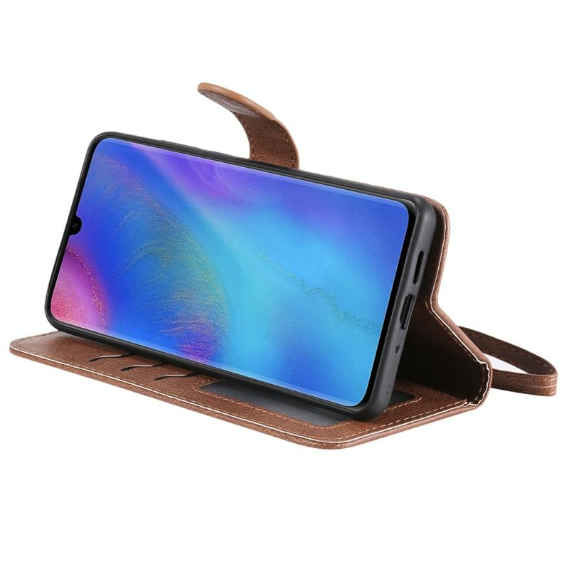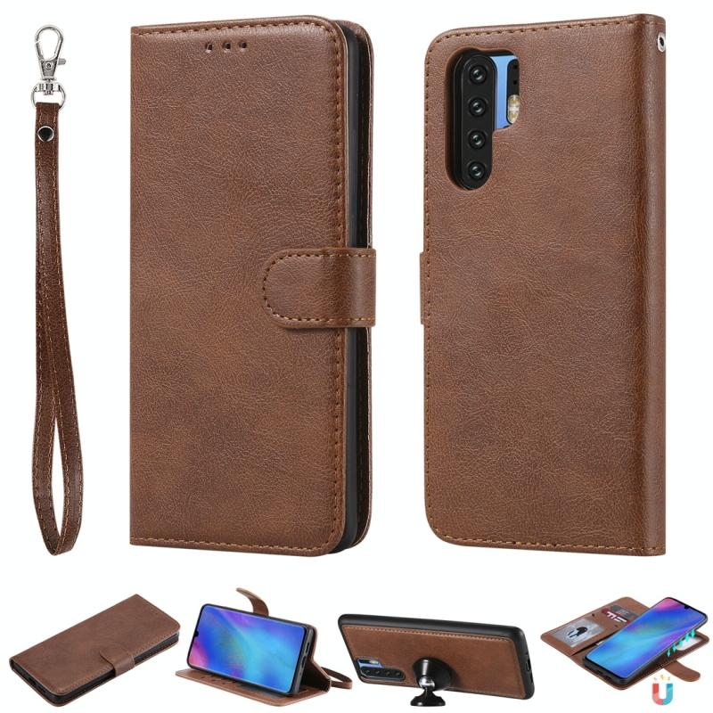 Θήκη προστασίας οριζόντιας αναδίπλωσης για Huawei P30 Pro, μονόχρωμη, με βάση στήριξης, θήκες για κάρτες, πορτοφόλι, κορνίζα φωτογραφιών & λουρί (Μωβ)