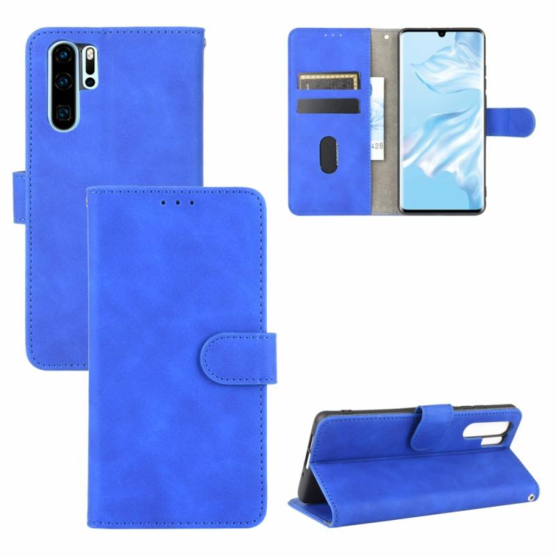 For Huawei P30 Pro Solid Color Skin Feel Magnetic Buckle Horizontal Flip Calf Texture PU Leather Case with Holder & Card Slots & Wallet(Blue)