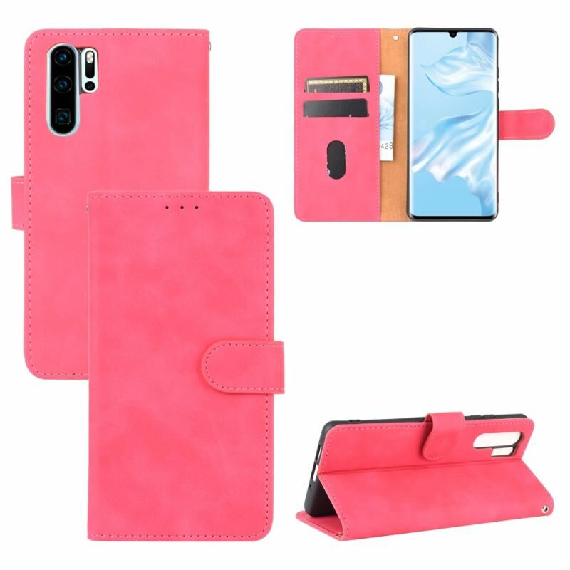 Για το Huawei P30 Pro Solid Color Skin Feel Magnetic Buckle Horizontal Flip Calf Texture PU Leather Case with Holder & Card Slots & Wallet (Rose Red)