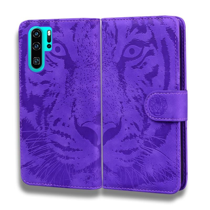 Θήκη Huawei P30 Pro με ανάγλυφο σχέδιο τίγρης, οριζόντια, από δέρμα με βάση στήριξης & θήκες για κάρτες & πορτοφόλι (Μαύρο)