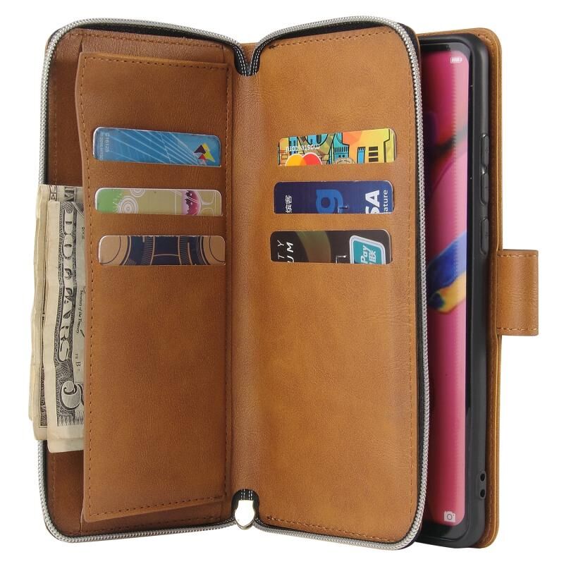 Για Huawei P30 Pro φερμουάρ τσάντα πορτοφόλι οριζόντια Flip PU δέρμα υπόθεση με κάτοχο & 9 υποδοχές για κάρτες & πορτοφόλι & κορδόνι & κορνίζα & πλαίσιο φωτογραφιών (καφέ)