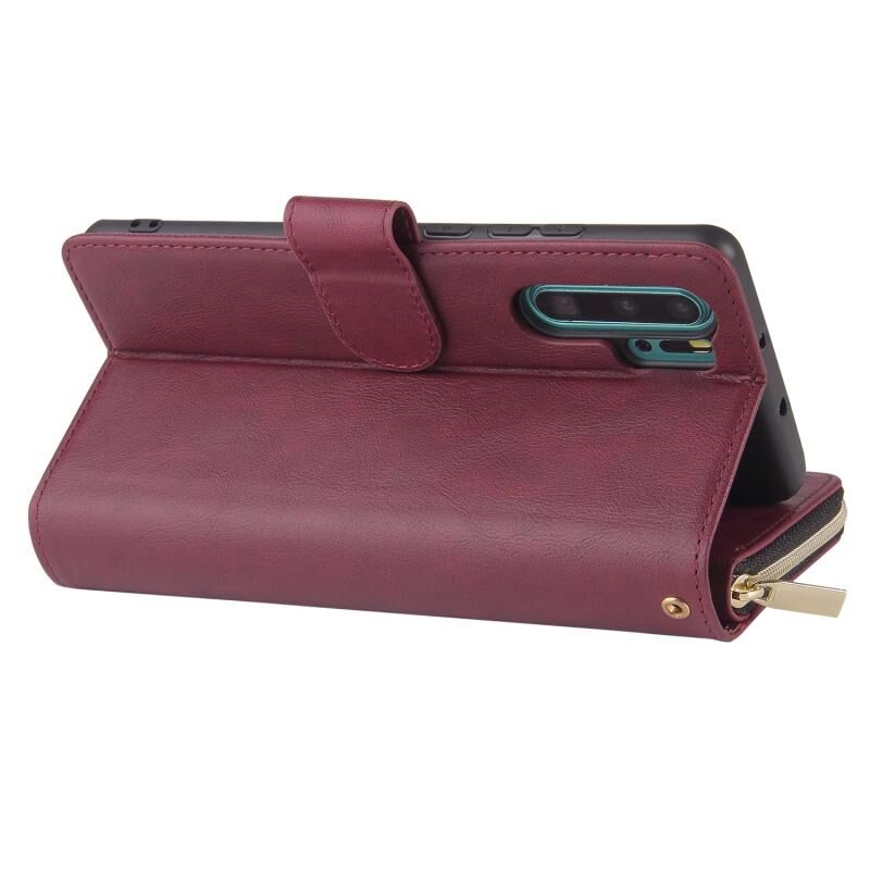 Για Huawei P30 Pro φερμουάρ τσάντα πορτοφόλι οριζόντια Flip PU δέρμα υπόθεση με κάτοχο & 9 υποδοχές για κάρτες & πορτοφόλι & κορδόνι & κορνίζα & πλαίσιο φωτογραφιών (κόκκινο κρασί)