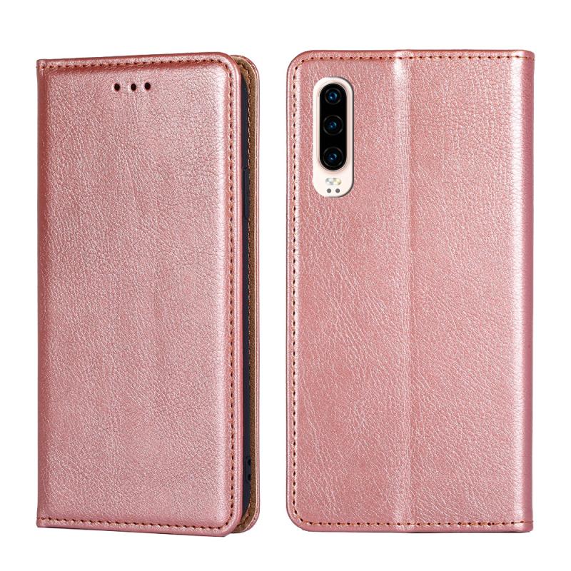 Θήκη Huawei P30 PU + TPU Λάδι Γυαλιστερό Μονόχρωμη Μαγνητική Οριζόντια Δερμάτινη με Στήριξη & Θήκη Κάρτας & Πορτοφόλι (Καφέ)