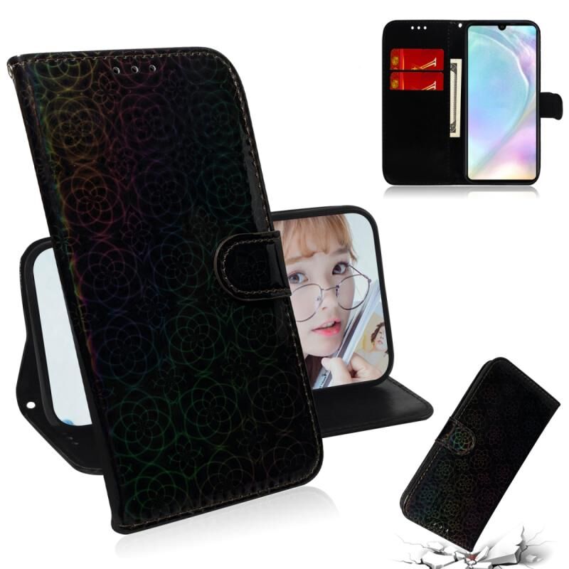 Για Huawei P30 Αμιγές χρώμα πολύχρωμο μαγνητικό πόρπη οριζόντια Flip PU δέρμα υπόθεση με κάτοχο & υποδοχές καρτών & πορτοφόλι & Lanyard (μαύρο)