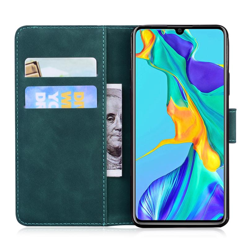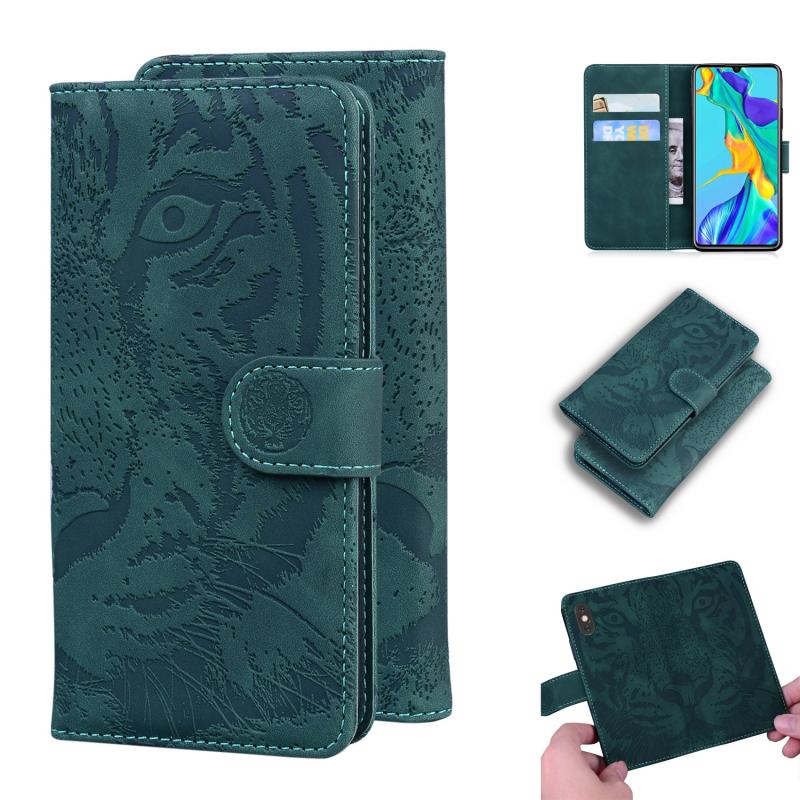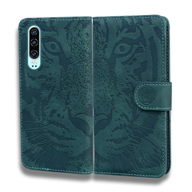 For Huawei P30 Tiger Embossing Pattern Horizontal Flip Leather Case with Holder & Card Slots & Wallet(Green)
