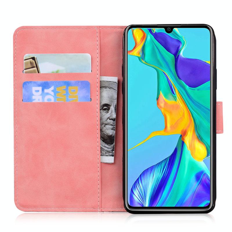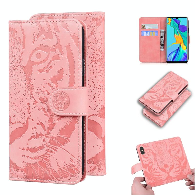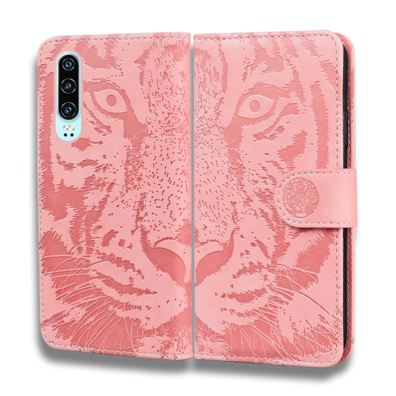 For Huawei P30 Tiger Embossing Pattern Horizontal Flip Leather Case with Holder & Card Slots & Wallet(Pink)