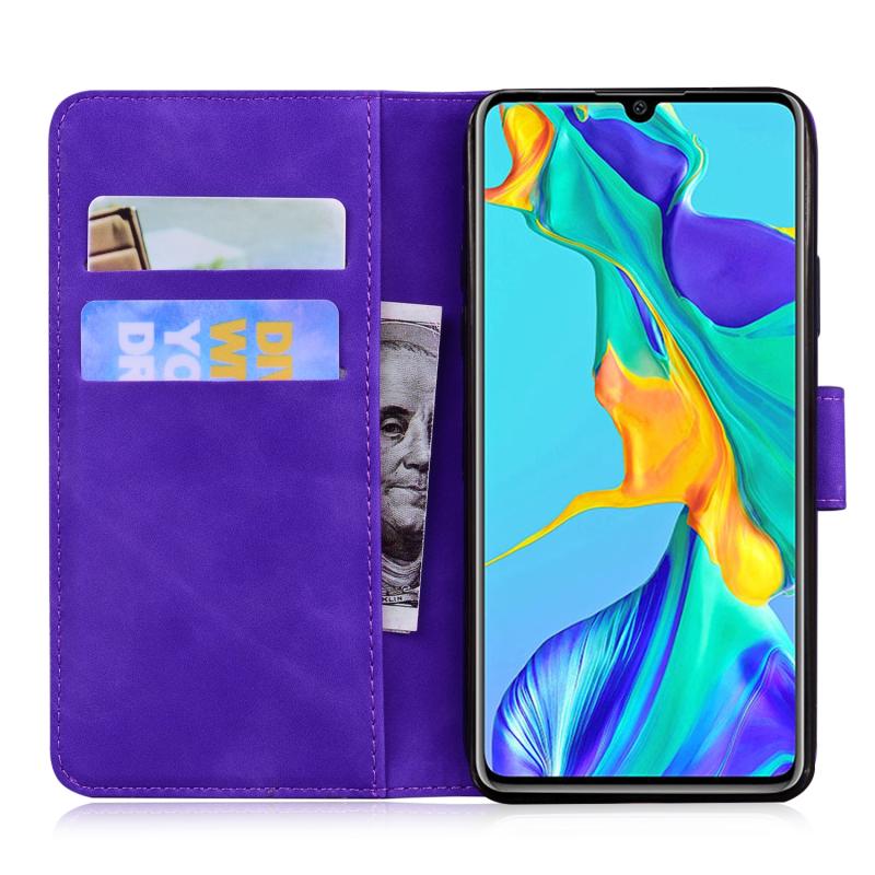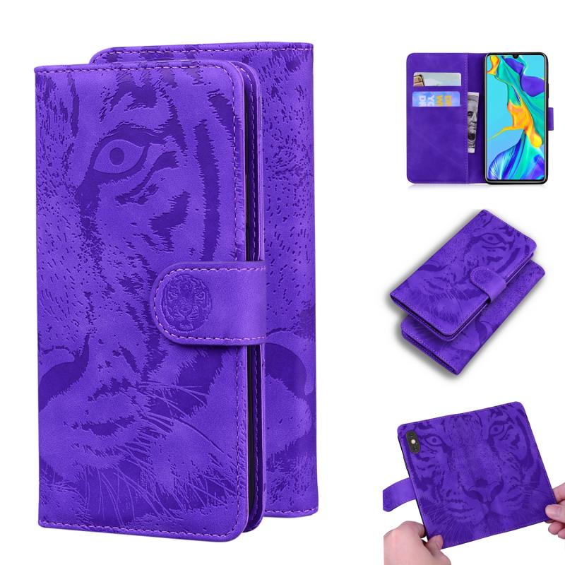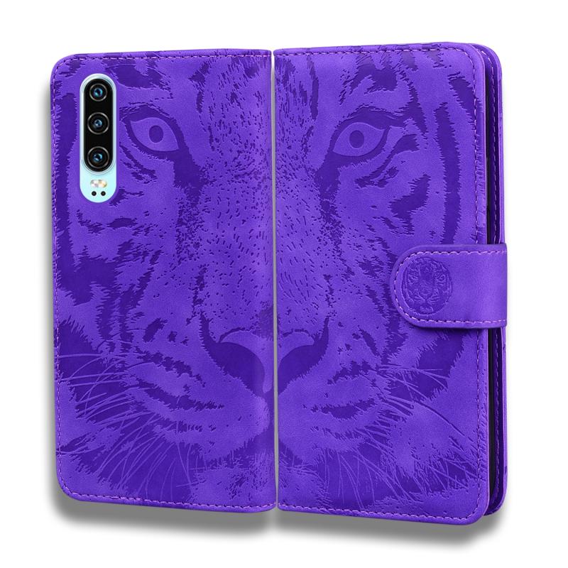 For Huawei P30 Tiger Embossing Pattern Horizontal Flip Leather Case with Holder & Card Slots & Wallet(Purple)