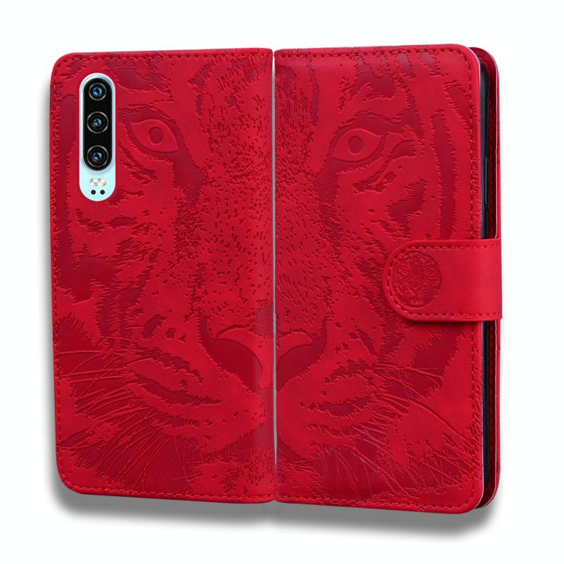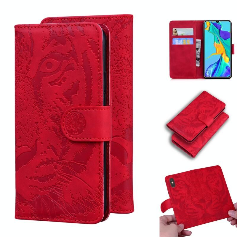 For Huawei P30 Tiger Embossing Pattern Horizontal Flip Leather Case with Holder & Card Slots & Wallet(Red)