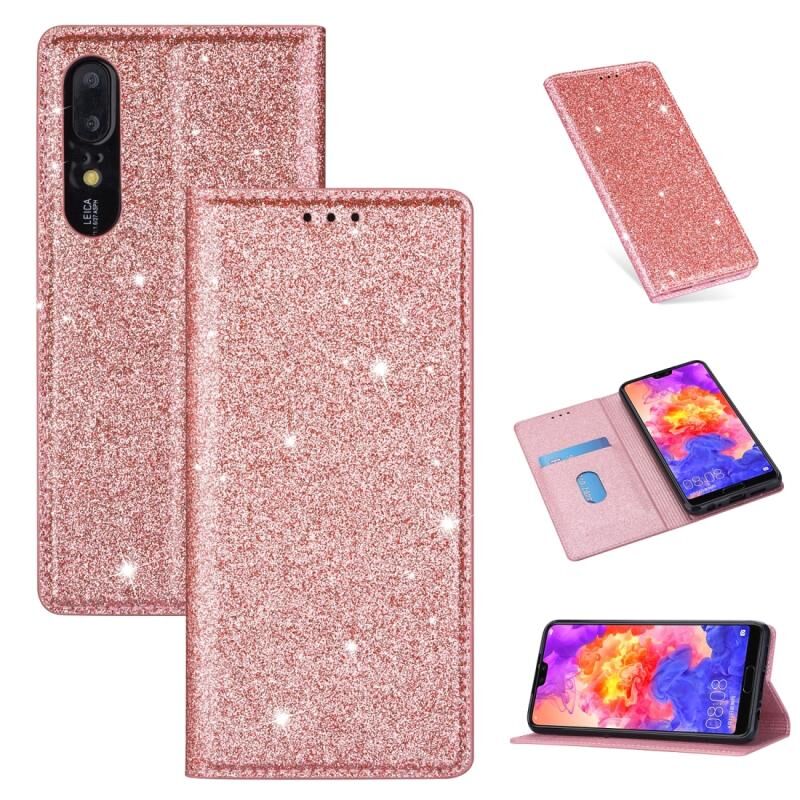 Για Huawei P30 Ultrathin Glitter μαγνητική οριζόντια Flip δερμάτινη θήκη με θήκη & υποδοχές για κάρτες (Rose Gold)