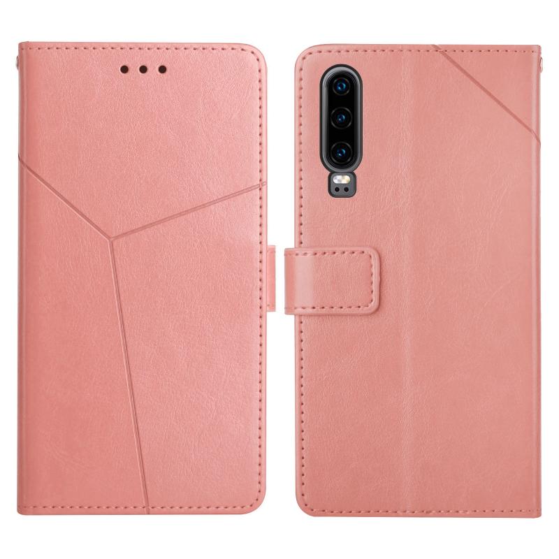 For Huawei P30 Y Stitching Horizontal Flip Leather Phone Case with Holder & Card Slots & Wallet & Photo Frame(Rose Gold)