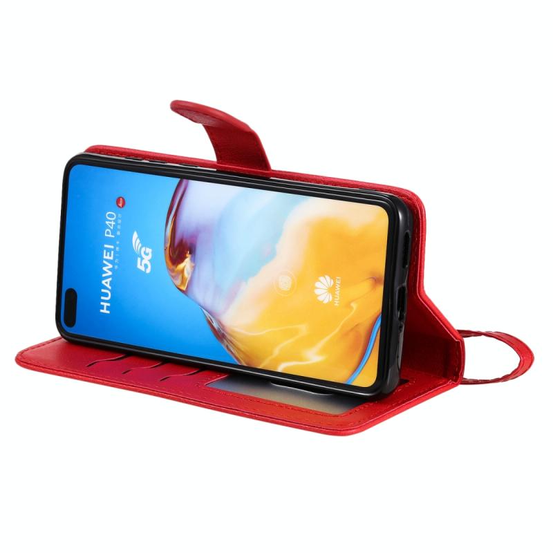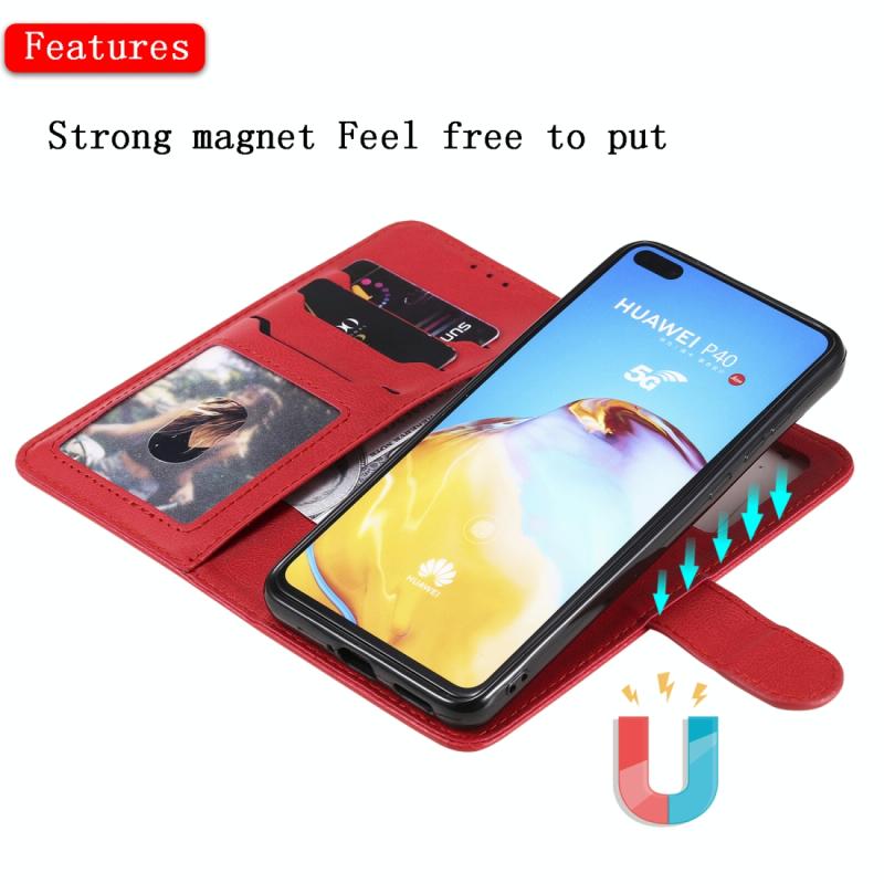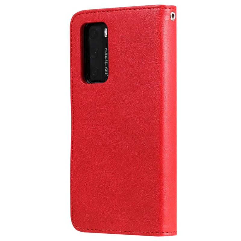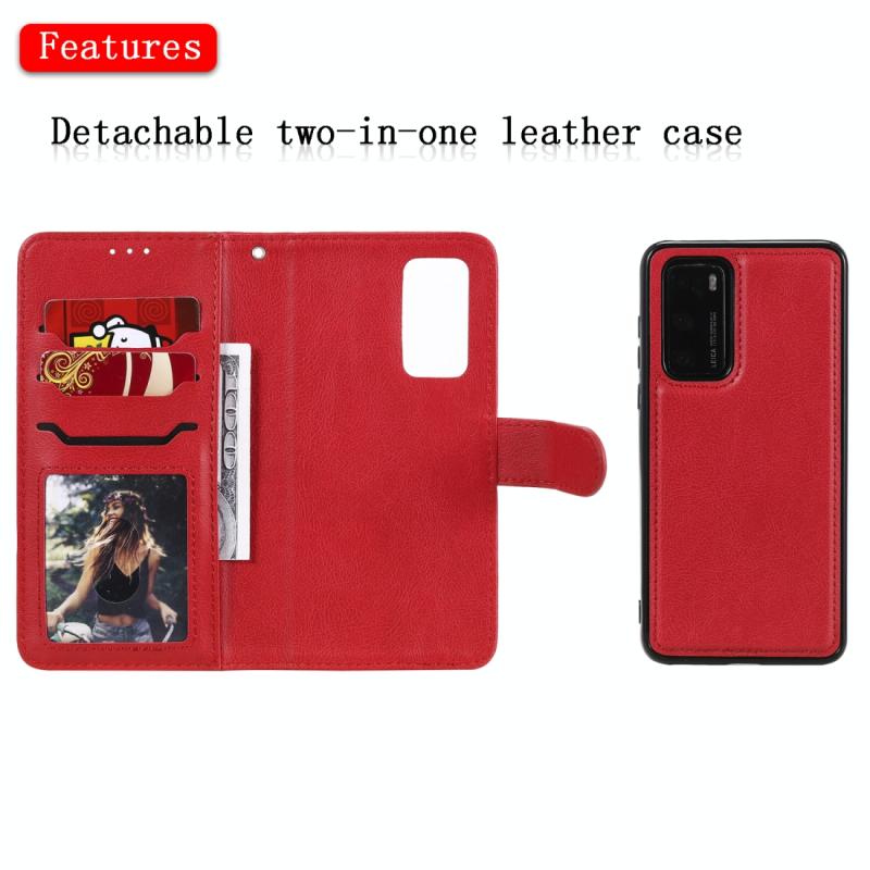 For Huawei P40 2 in 1 Solid Color Detachable PU Leather Case with Card Slots & Magnetic Holder & Photo Frame & Wallet & Strap(Red)