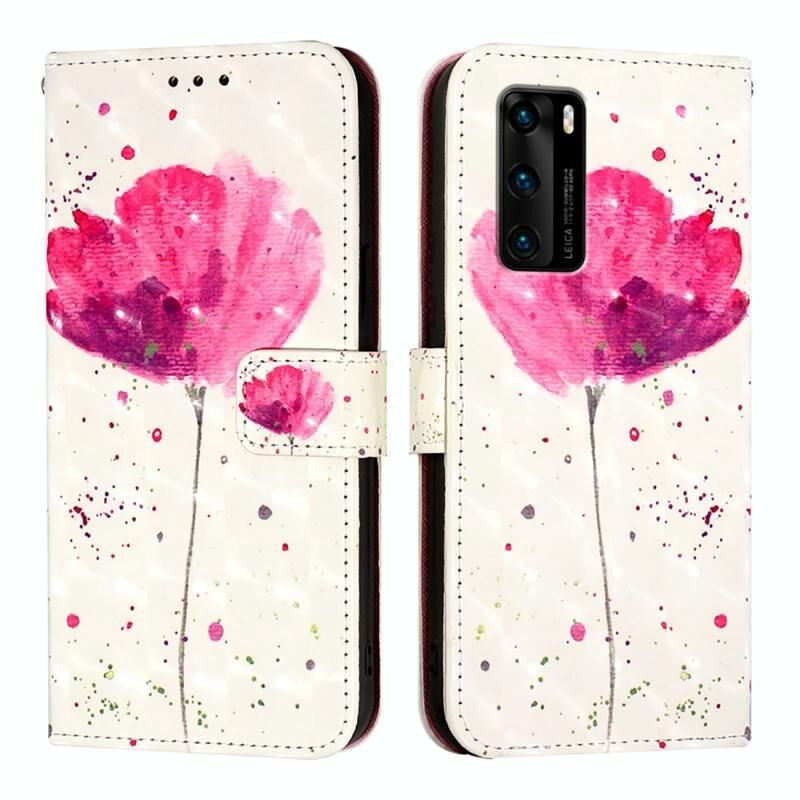 Θήκη τηλεφώνου από δέρμα με οριζόντια αναδίπλωση και τρισδιάστατη ζωγραφική για Huawei P40 (Λουλούδι)