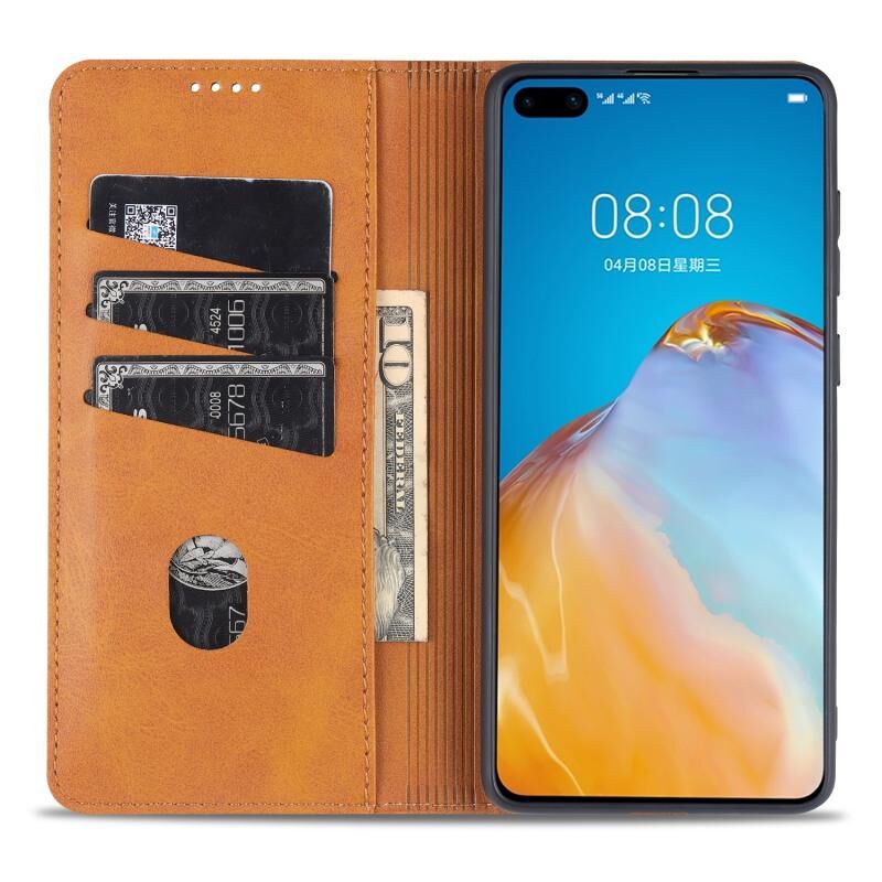 For Huawei P40 AZNS Magnetic Calf Texture Horizontal Flip Leather Case with Card Slots & Holder & Wallet(Dark Brown) (AZNS)