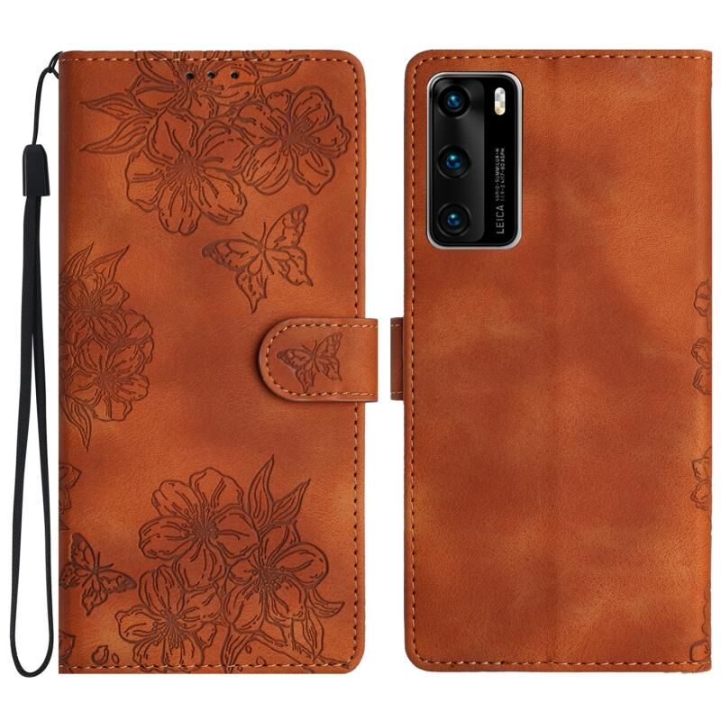 Θήκη τηλεφώνου Huawei P40 Cherry Blossom Butterfly με ανάγλυφη υφή PU (Κόκκινο)