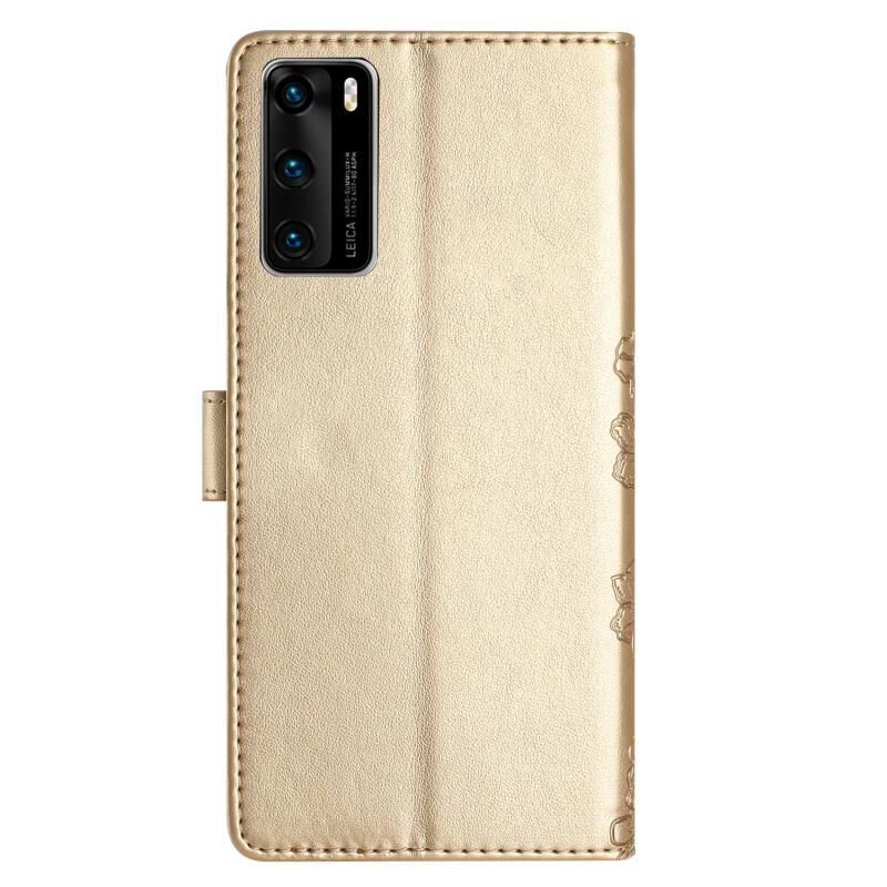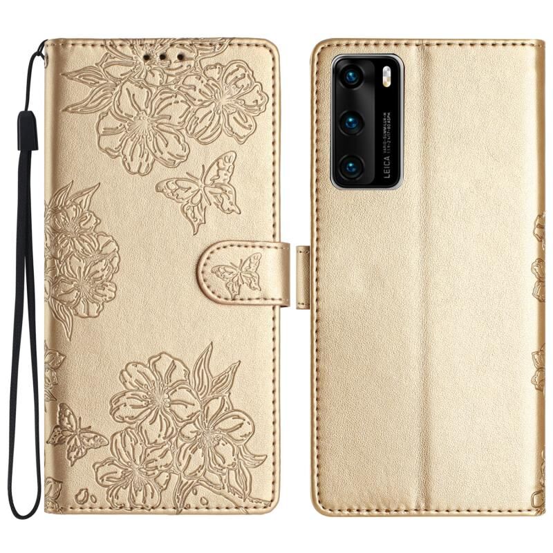 Θήκη τηλεφώνου Huawei P40 Cherry Blossom Butterfly με ανάγλυφη υφή PU (Κόκκινο)